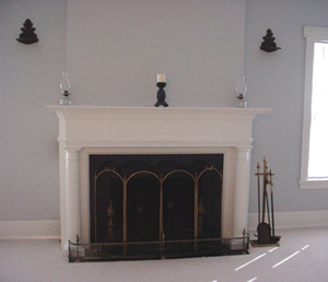 Depicted here is the family room just off the front foyer and a close-up of its fireplace.